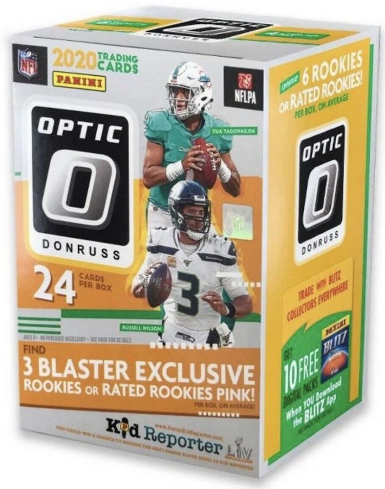 2020 Panini Donruss Optic NFL Football Trading Cards Mega Box. 2020 Donruss Football. Collectors will want to look for 8 Rookies 4 Rated Rookies 4 Red Mojo Parallels 1 Rookie or Rated Rookie Holo 1 Base Holo and 1 additional Parallel on average.