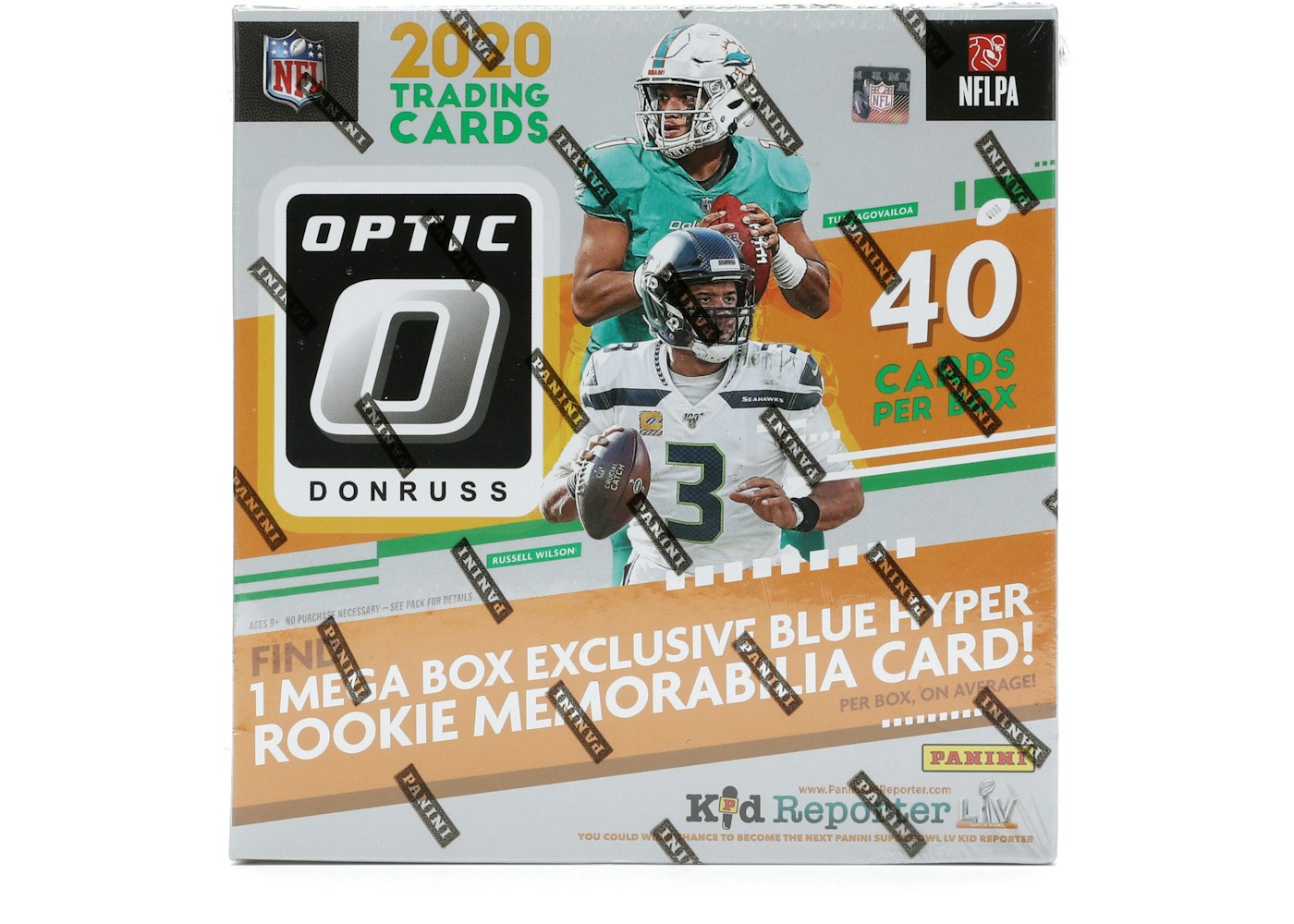 2020 Panini Donruss Optic Football Mega Box Blue Hyper Parallels DA Card World. 10 Packs Per Box 4 Cards Per Pack Each Box contains Two Bronze Parallels Seven Rookies Three Rated Rookies Three BaseRookiesRated Rookies Holo Parallels One Autograph and One Memorabilia. Free shipping Free shipping.